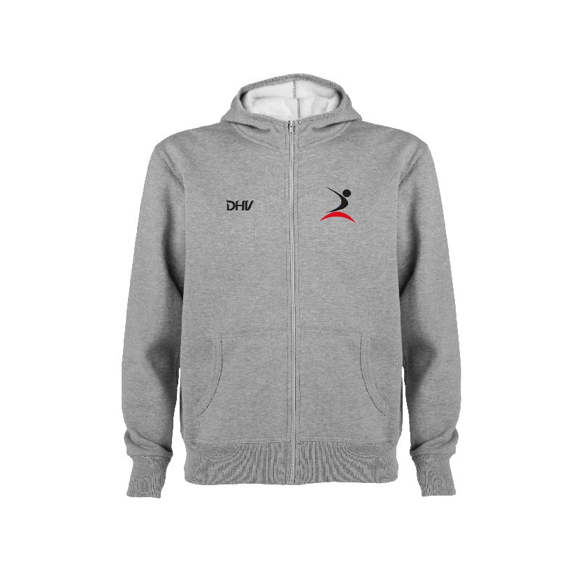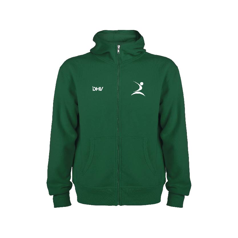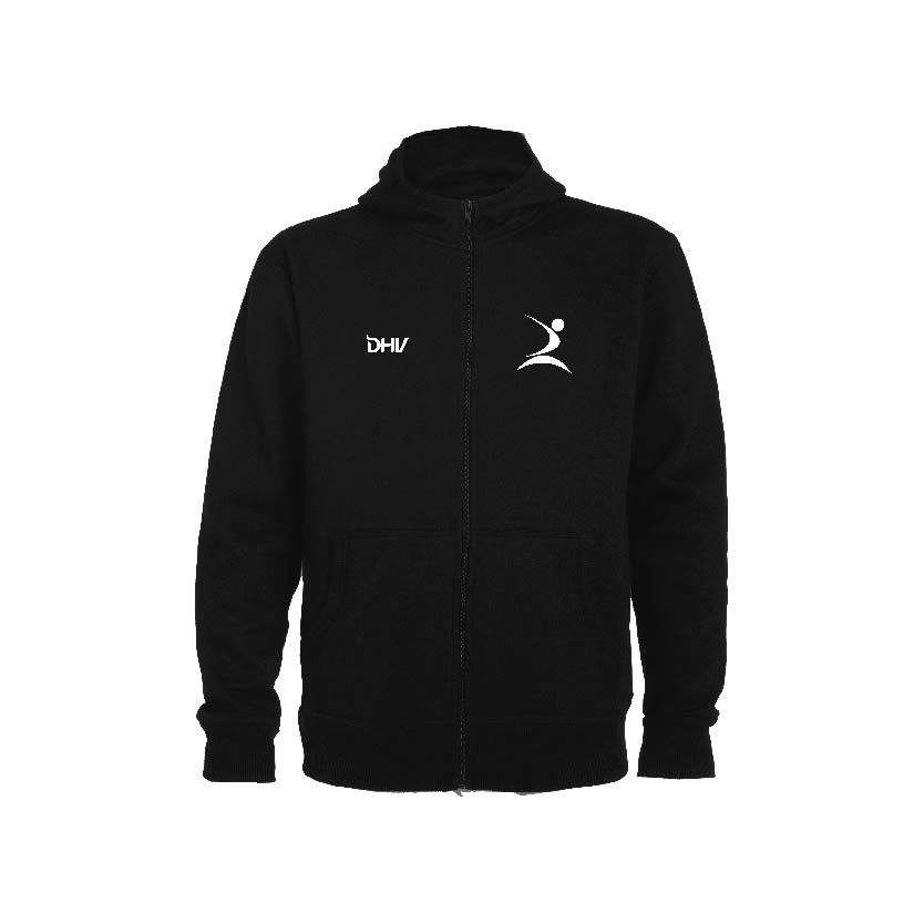 • Sweatshirt unissexo com fecho de correr frontal e capuz